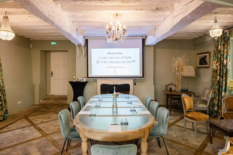 Le Domaine d'Aveny propose 4 salles dans un cadre champêtre normand entièrement privatisable. L'intimité du lieu — 15 chambres et un parc de 6 hectares — en fait un écrin idéal pour les séminaires de direction et retraites stratégiques. Les espaces de réunion allient authenticité rurale et équipements fonctionnels pour des groupes de 10 à 50 personnes en quête de déconnexion et de cohésion.